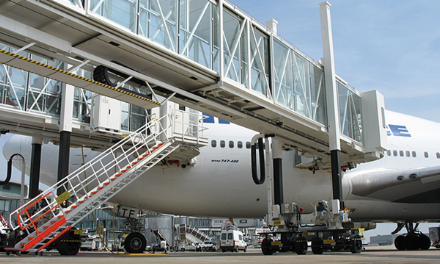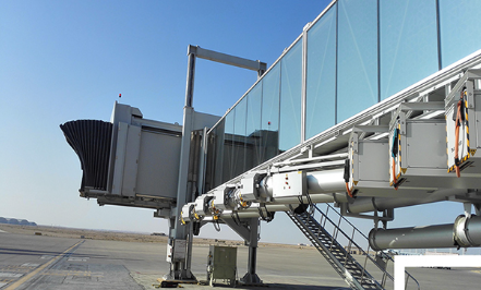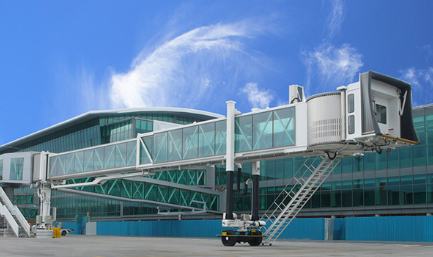 A380登機(jī)橋二層U1超高艙門(mén)而設(shè)計(jì)的登機(jī)橋,采用了行業(yè)內(nèi)首創(chuàng)的四輪驅(qū)動(dòng)行走機(jī)構(gòu)及其控制系統(tǒng)。